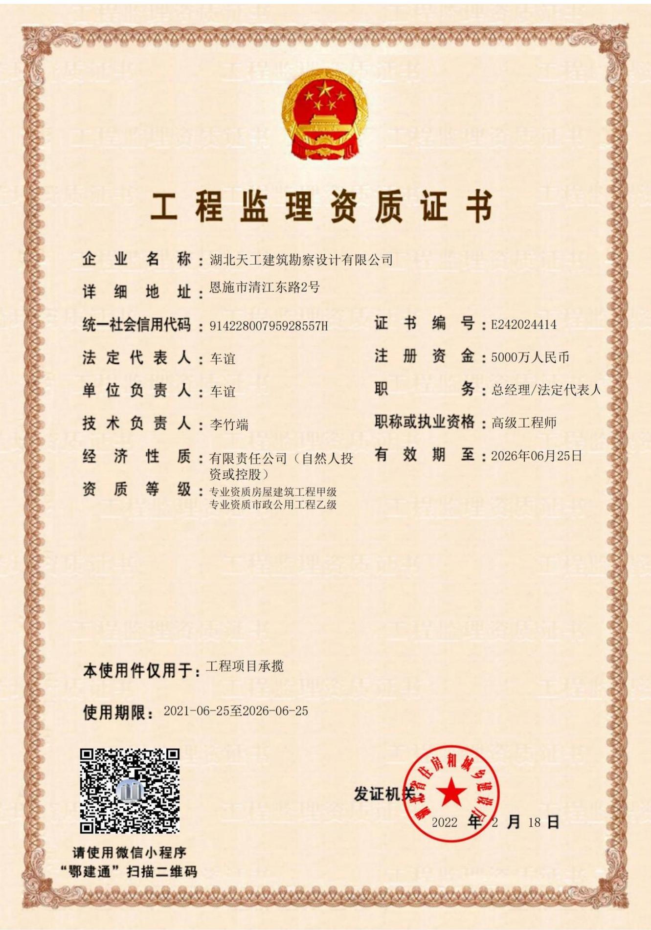 工程監理資質證書