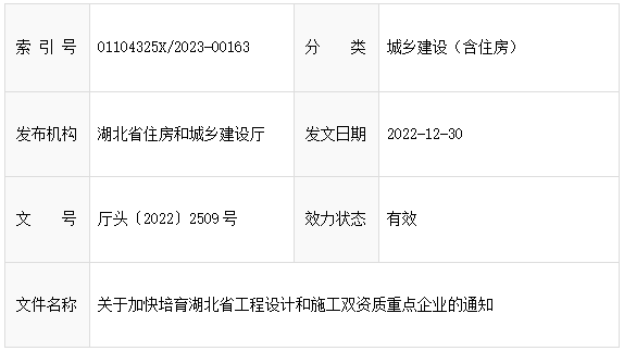 [轉載湖北省住房和城鄉建設廳網]關于加快培育湖北省工程設計和施工雙資質重點企業的通知